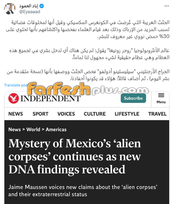 إلا أن الفيديو الذي عرض في الكونغرس لم يمر مرور الكرام، بل أثار موجة استغراب عارمة عبر وسائل التواصل الاجتماعي، لاسيما من مؤيدي نظرية وجود كائنات فضائية. وبالنسبة للعديد من العلماء، فإن هاتين الجثتين المحنطتين الصغيرتين برأسين ممدودين، اللتين انتشرت صورهما في جميع أنحاء العالم حينها، لا تعتبران أكثر من محاولة احتيال فاشلة بل جريمة احتيال، وفق لكلامهم.