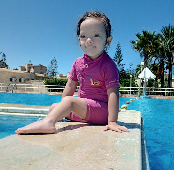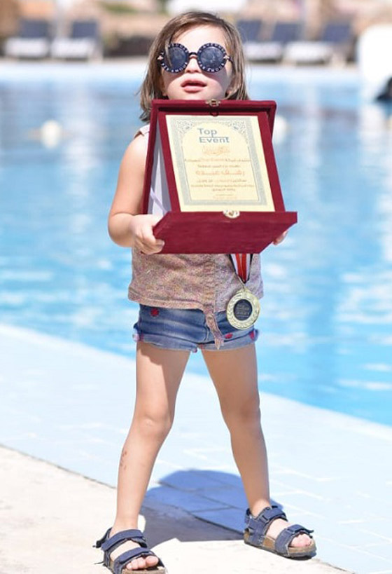 "رهف" أصغر عارضة أزياء من أصحاب متلازمة داون وتسعى للبطولة في السباحة